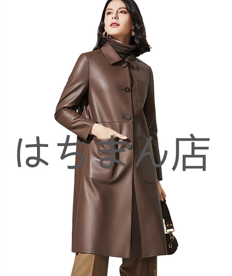 - ステンカラーコート レディース 本革 ロングコート ラムレザー ロング丈 革ジャン レザージャケット 革コート ロング 秋冬 ブラウン M-3XL