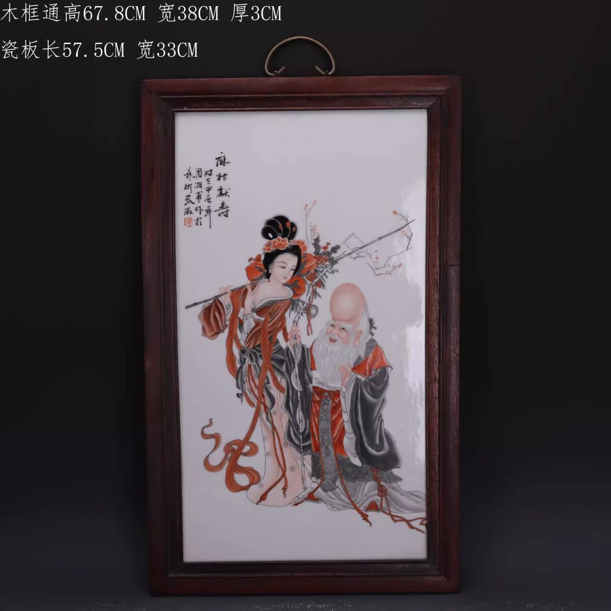 - ◆旧家蔵出◆古美術 中国古玩 民國時期 唐木 粉彩 麻姑献壽紋瓷板画挂屏 古賞物 擺件 骨董 時代物 CN01