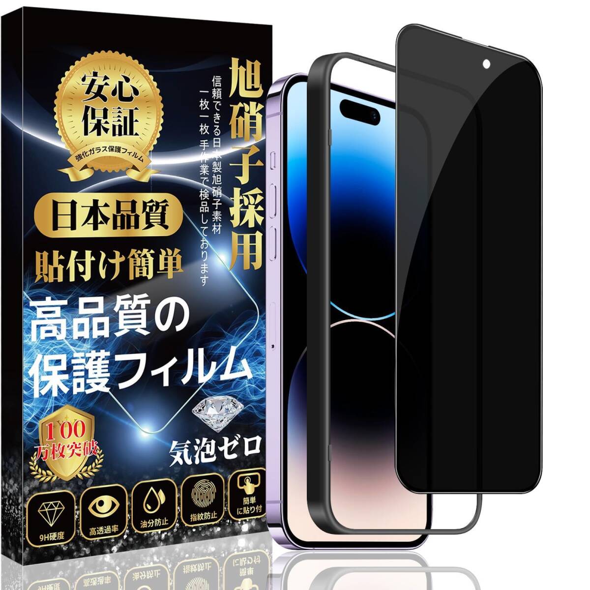 - iPhone 14 Pro Max ガラスフィルム iPhone 14ProMax 覗き見防止 ガラスフィルム 強化 ガラス【のぞき見防止 ガイド枠付き】旭硝子素材製