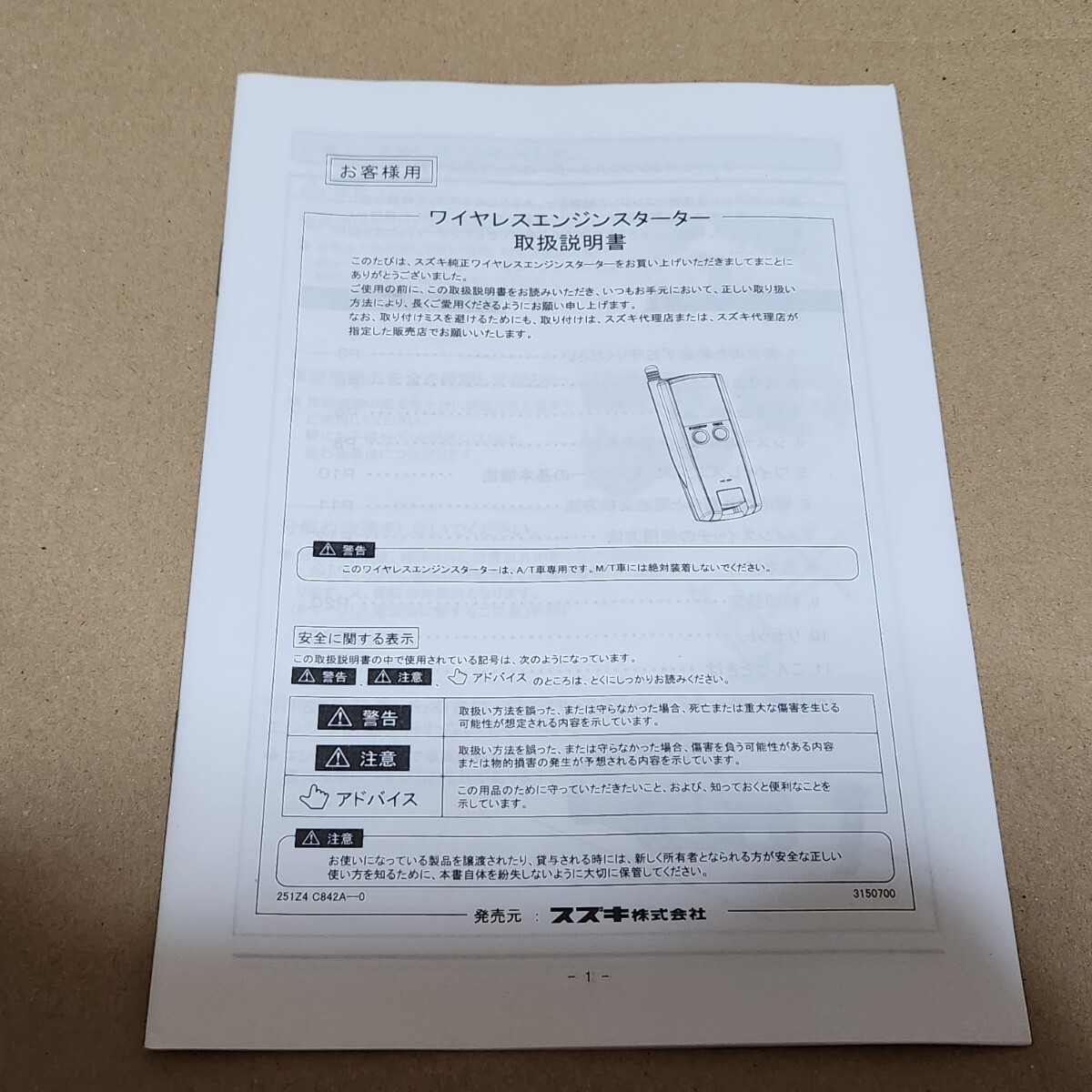 - SUZUKI スズキ 純正 ワイヤレスエンジンスターター 取説 取付説明書 取扱書 設定マニュアル