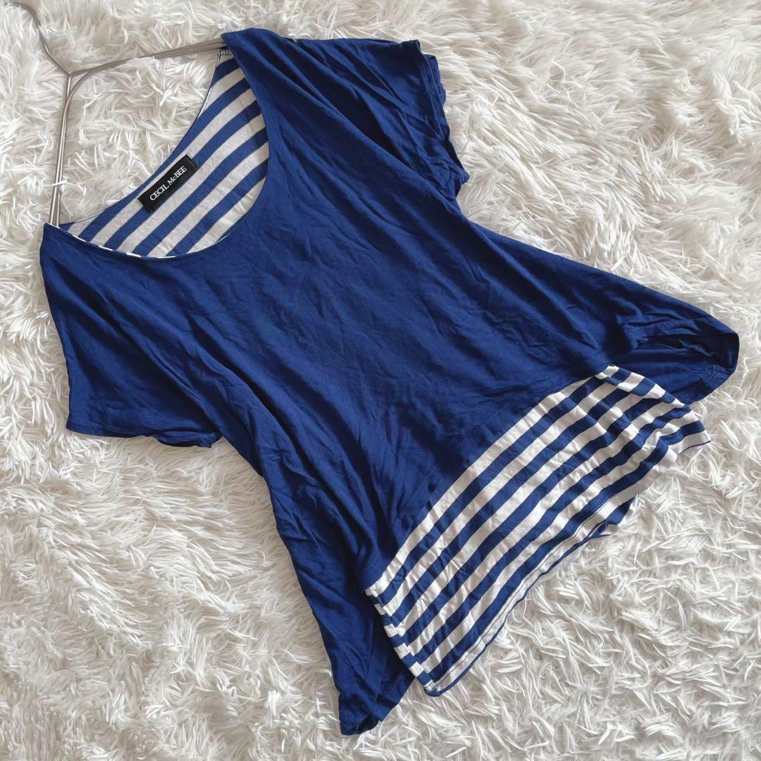 - 『セシルマクビー』 (M) 重ね着風半袖Tシャツ カットソー ボーダー柄 韓国