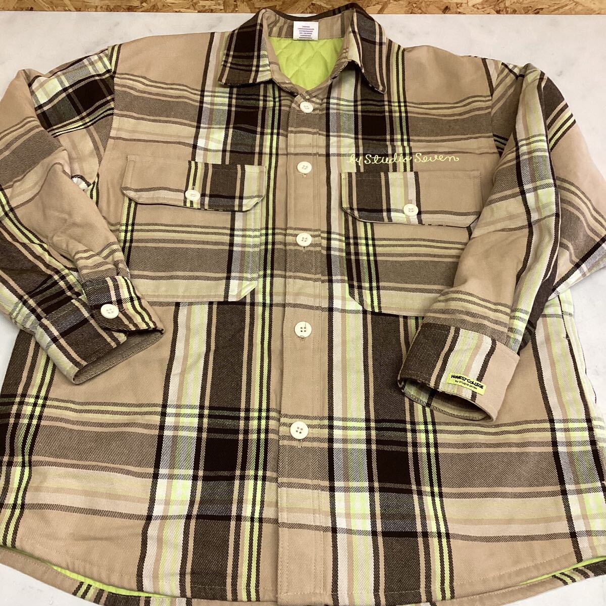 > GU メンズ アウター Lサイズ ベージュ チェック柄 可愛い (こ54)