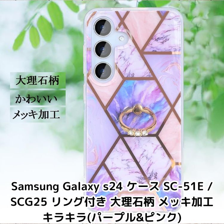 - Samsung Galaxy s24 ケース SC-51E / SCG25 リング付き 大理石柄 メッキ加工 キラキラ おしゃれ かわいい (パープル&ピンク)