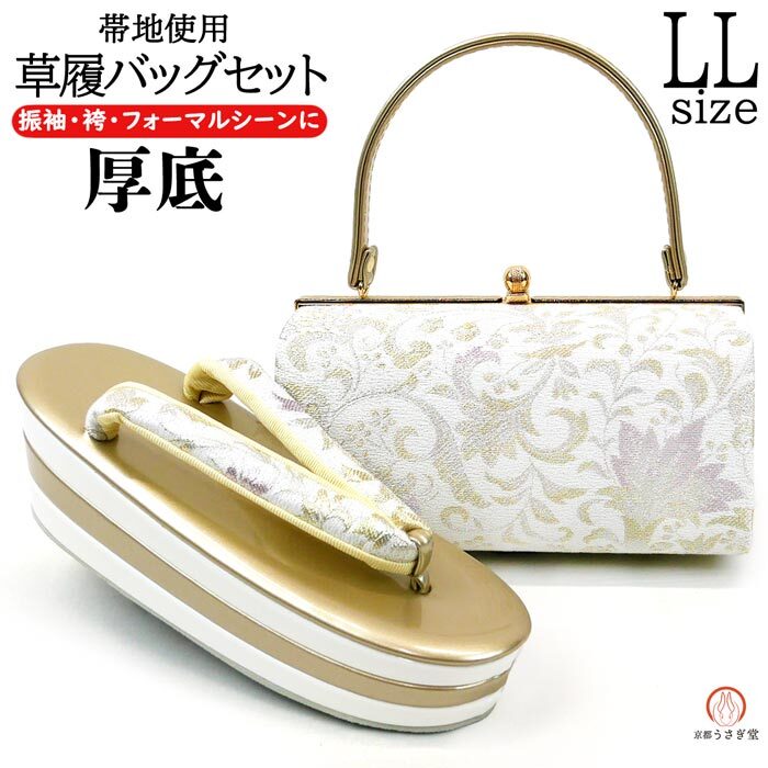 > LLサイズ 振袖用 草履バッグセット zb-706 金 ゴールド 帯地 振袖 袴 訪問着 成人式 卒業式 結婚式