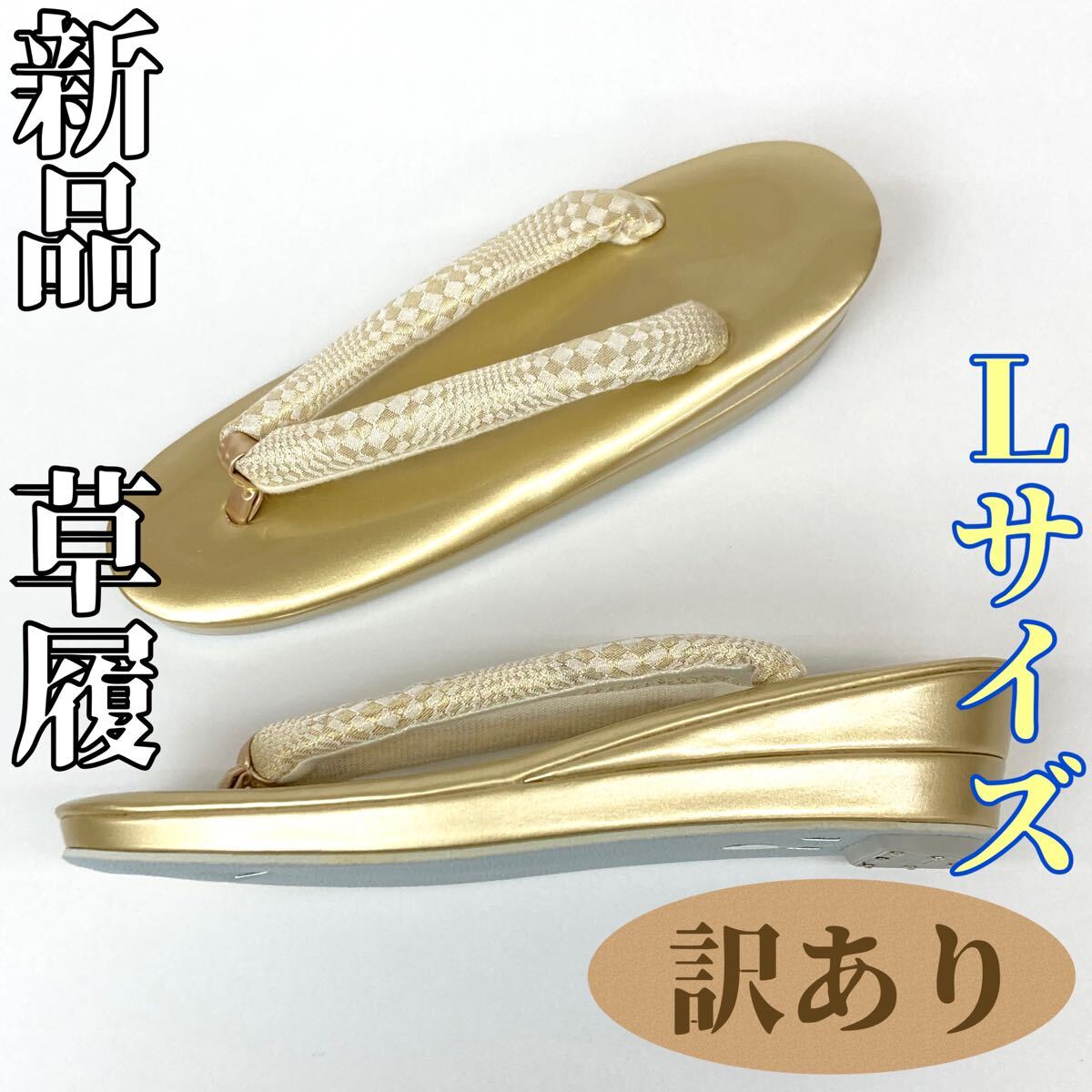 - 【着物と帯 時流】Z241091◆訳あり 新品 草履◆Lサイズ ゴールド