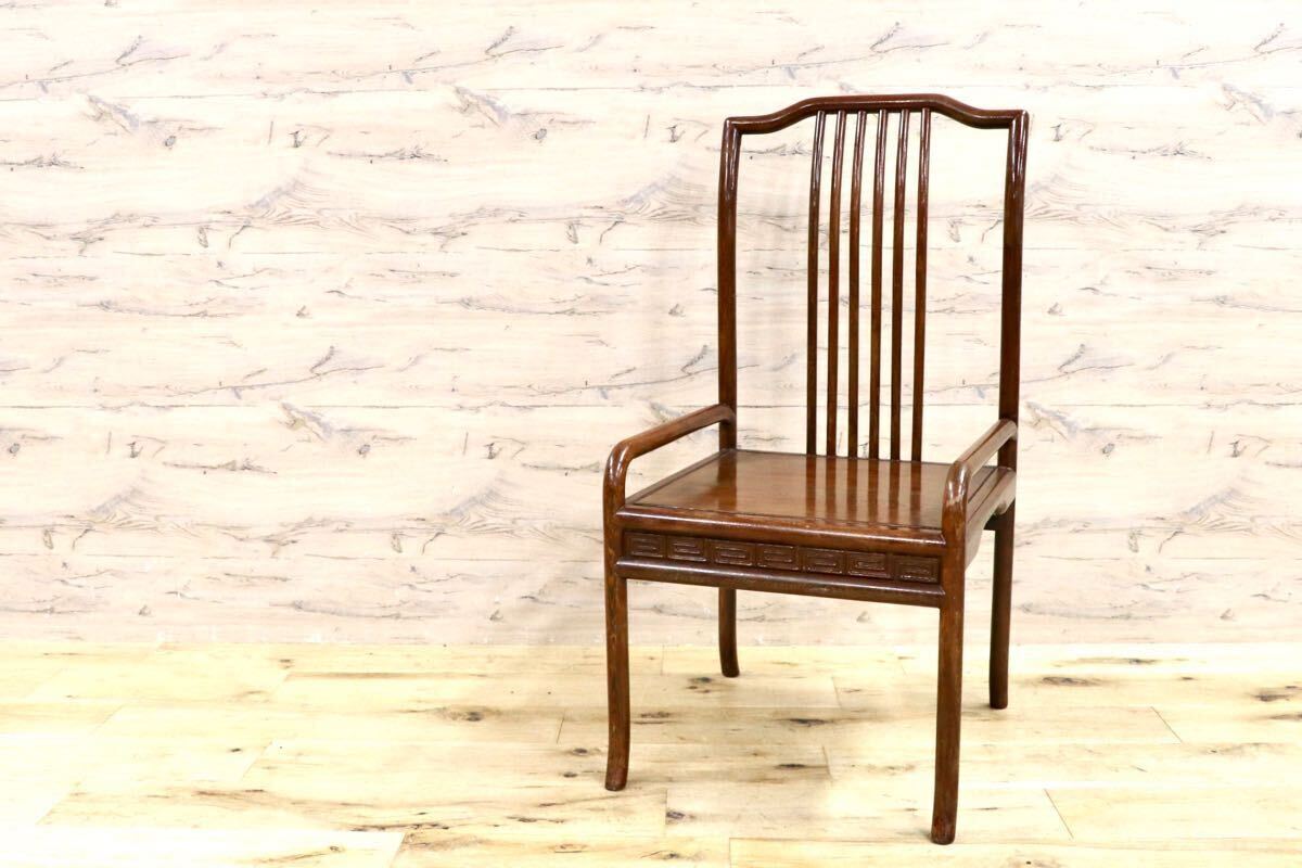> GMGS114○唐木家具 鉄刀木 ダイニングチェア 食卓椅子 セミアームチェア アジアン ヴィンテージ オリエンタル 中国美術 椅子 木製家具