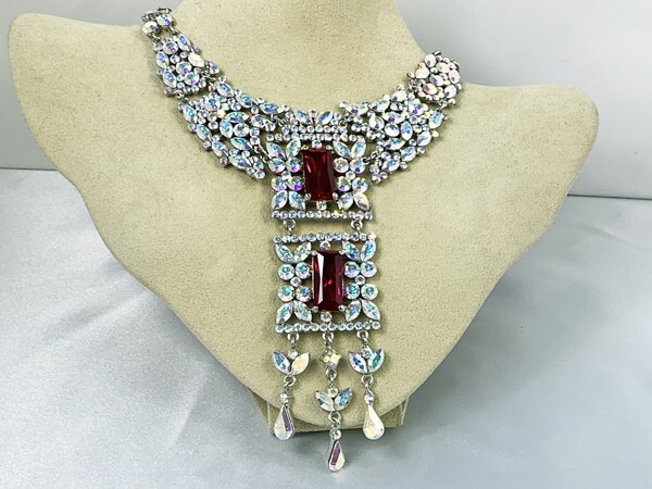 - 送料無料! ゴージャス ネックレス 赤 ジルコニア パーティ― ダンス衣装 ベリーダンス キラキラ アクセサリー ◇N-0005