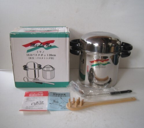 - 未使用品 ステンレス製18-8 ミラノパスタポット20㎝ ガラス蓋パスタ鍋 和平フレイズ G-3105 お玉・トング付/24N9.19-17
