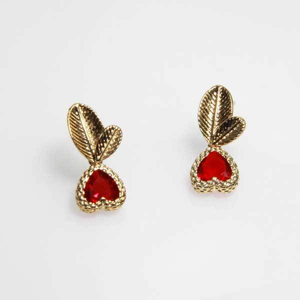 - ピアス レディース ハート リーフ レッド ゴールド ギフト mimosa
