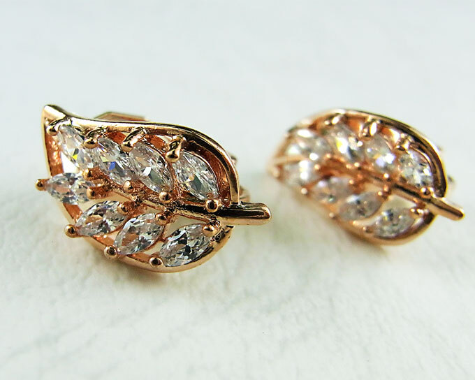 - イヤリング レディース リーフ 葉 ラインストーン ゴールド mimosa