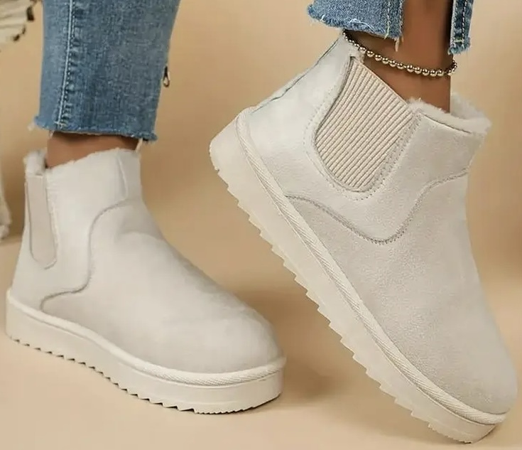 - 新品!フリース裏地付きアンクルブーツ 23.5cm/アイボリーベージュ
