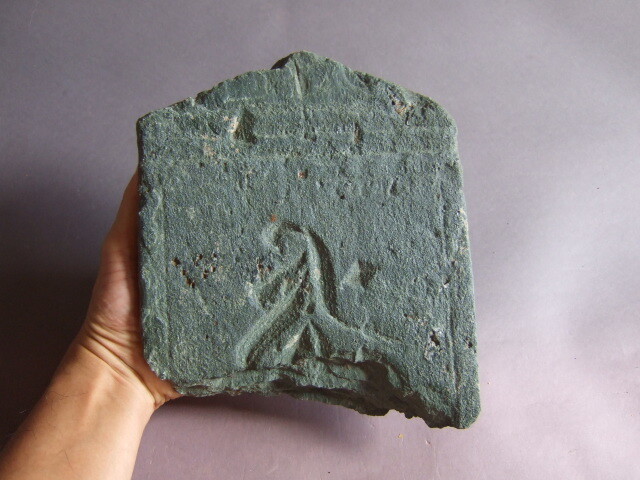 - 鎌倉ー室町期板碑1如意輪観世音菩薩種字「キリーク」サンスクリット文字武士僧尼中世仏教美術入門石の古民藝残欠陶片墓碑