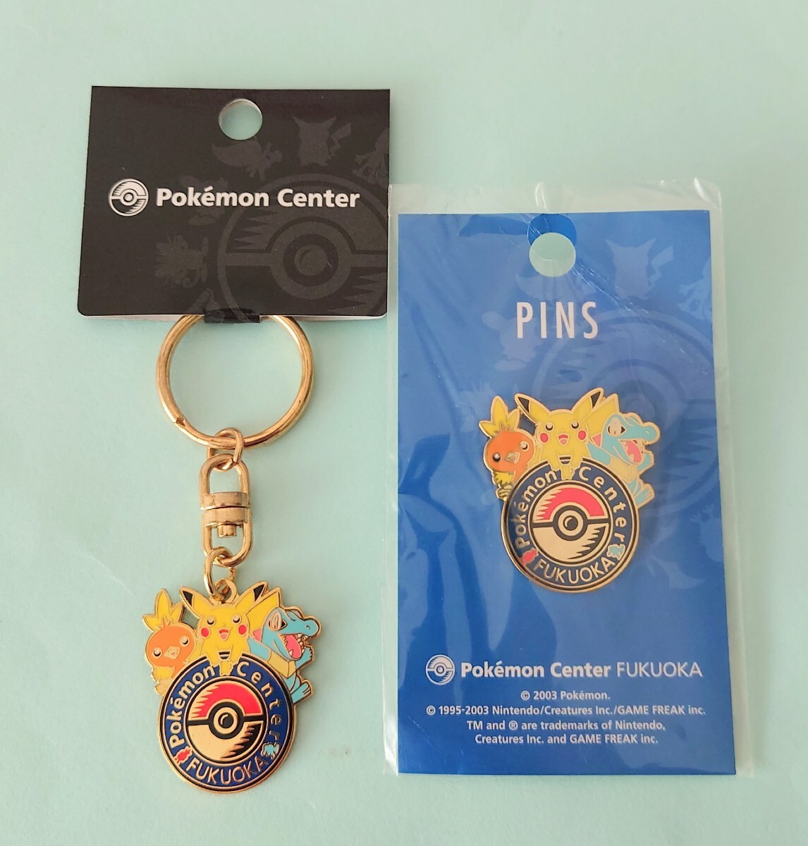 - 未使用 ポケモンセンターフクオカ 2003 キーホルダー&ロゴピンズ(台紙折れ有り) ピカチュウ アチャモ ワニノコ 福岡 FUKUOKA ピンバッジ