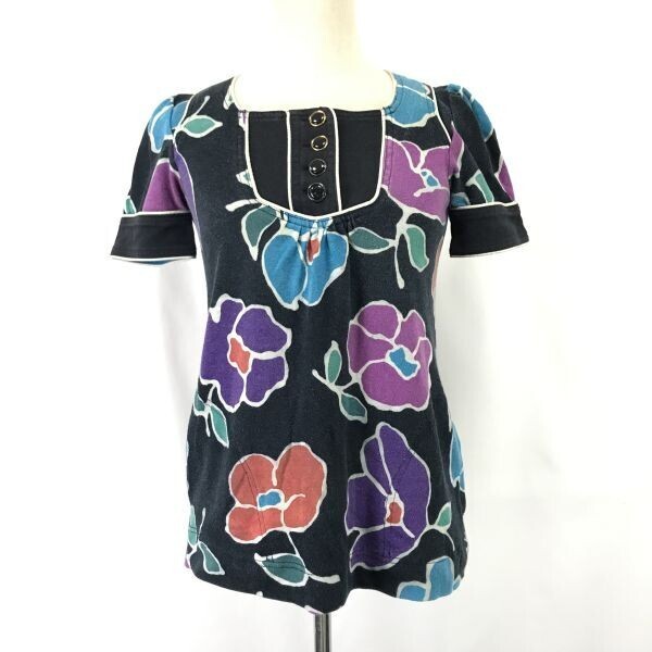 > MARC BY MARC JACOBS/マークジェイコブス★半袖カットソー/ブラウス【レディースXS/black/黒】Tシャツ/花柄/Tops/Shirts◆BH719