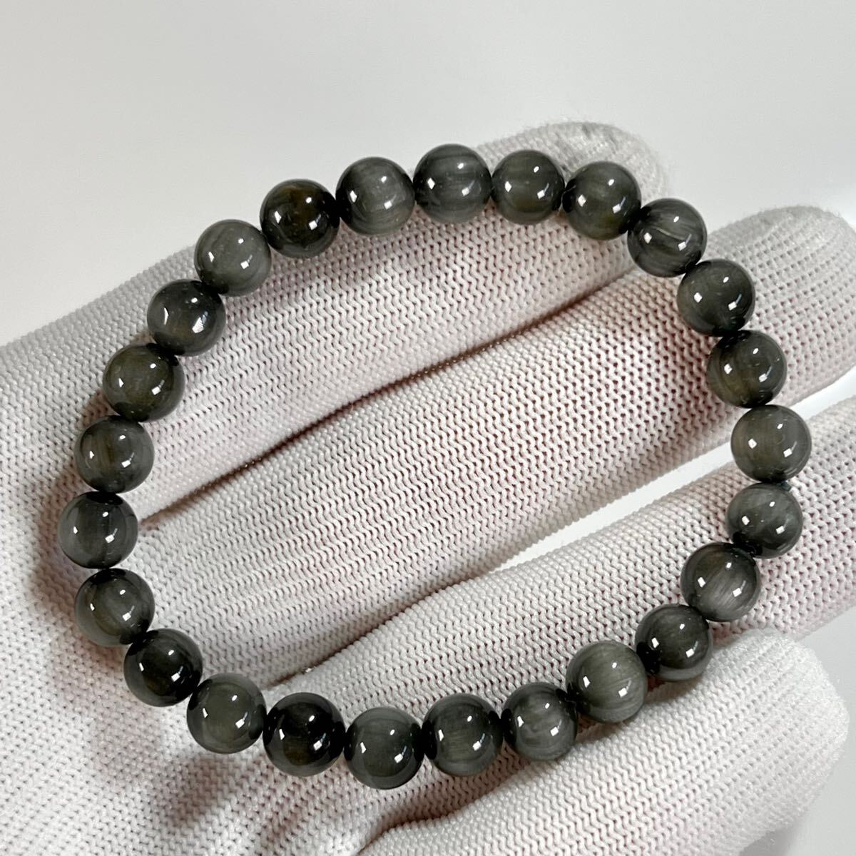 > 高品質 グレーファイバラスブレスレット 針が柔らかい キャッツアイあり 3 天然石 ルチルクォーツ