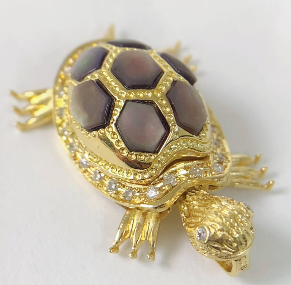 - 可愛い K18 亀モチーフ シェル 天然ダイヤモンド0.18ct ペンダント 約7.2g