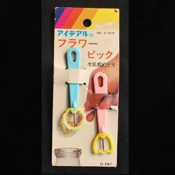 - ●2052●日本製 レトロ雑貨 ( 1970年代 ) 未使用品!◆ アイデアルのフラワーピック (牛乳瓶蓋とり ) ◆ 色違い 2 種 2 本 set