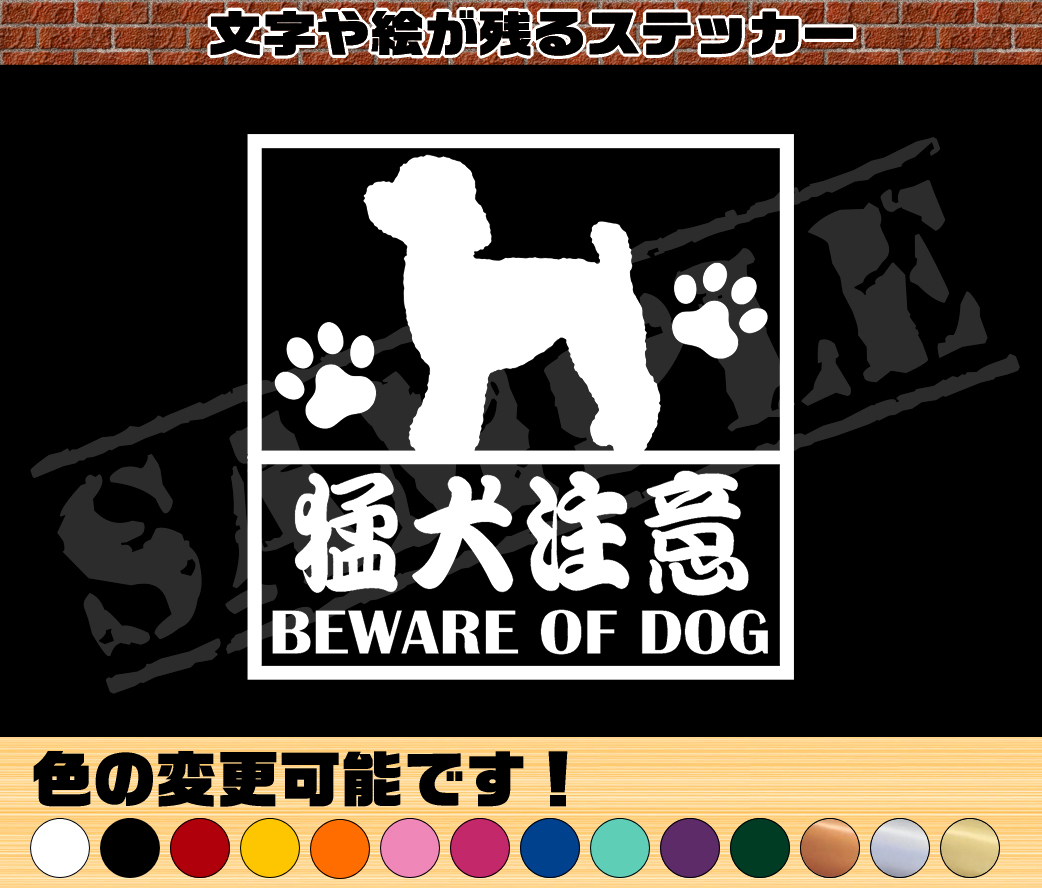 - ■□猛犬注意・プードル① 四角枠パロディステッカー 9cm×9cm 玄関や車に貼ろう!□■