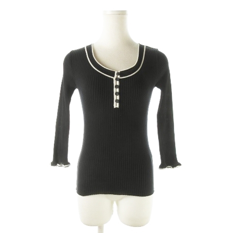 > エル ELLE ニット セーター リブ ラウンドネック ヘンリーネック 七分袖 ライン 38 黒 ブラック /AO5 レディース