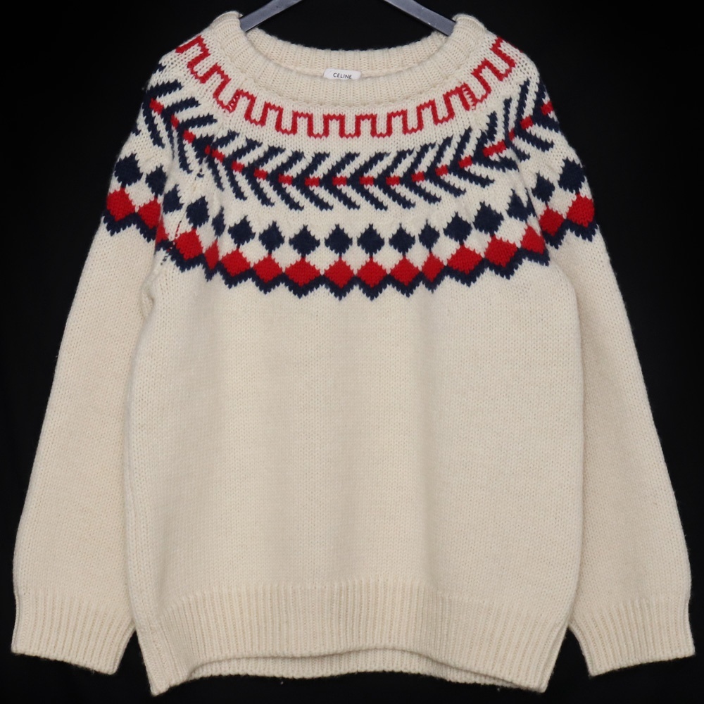 - CELINE オーバーサイズシェットランドクルーネックセーター Mサイズ ベージュ 2A38Q107O セリーヌ ニット OVERSIZED SHETLAND SWEATER
