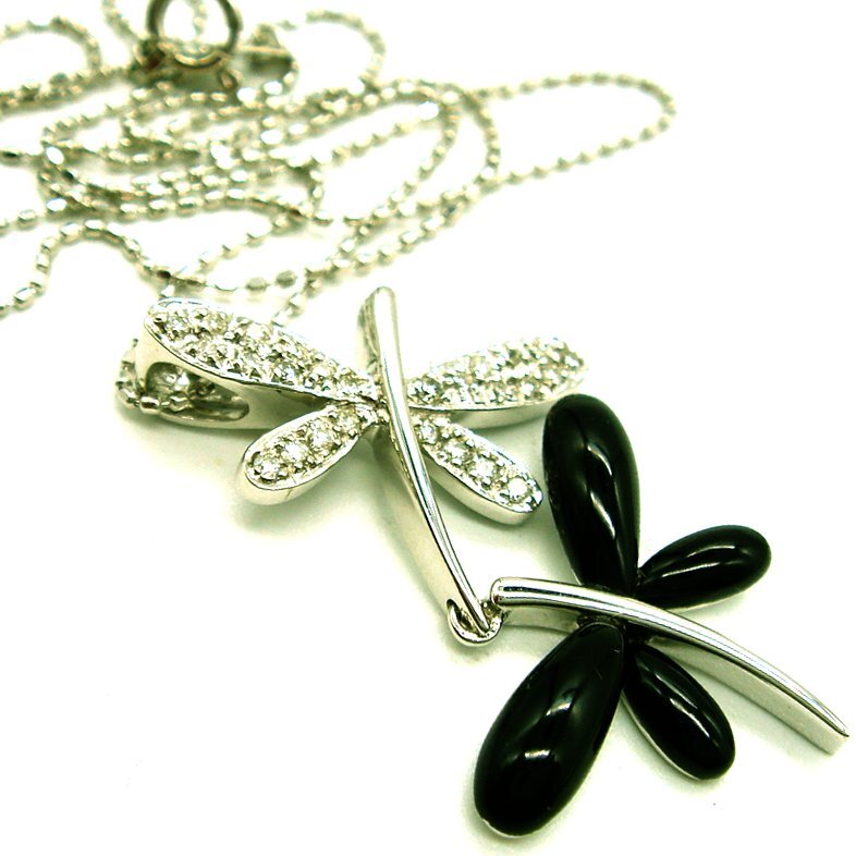 - PN576:K18WG オニキス ダイヤ ペンダントネックレス