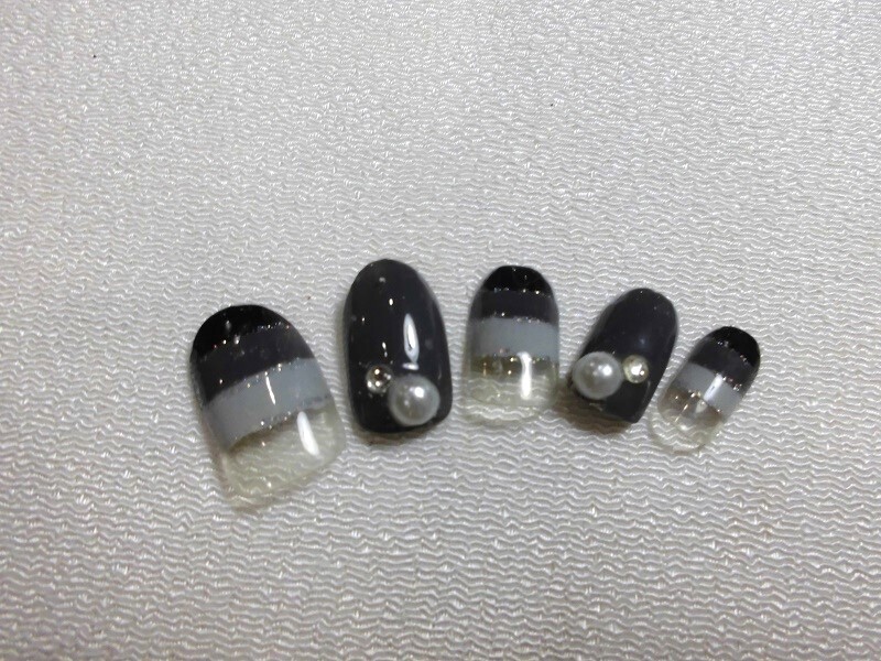 - ・(定型外orクリックポスト発送込み) 3色のボーターでネイルチップ ジェル使用作品