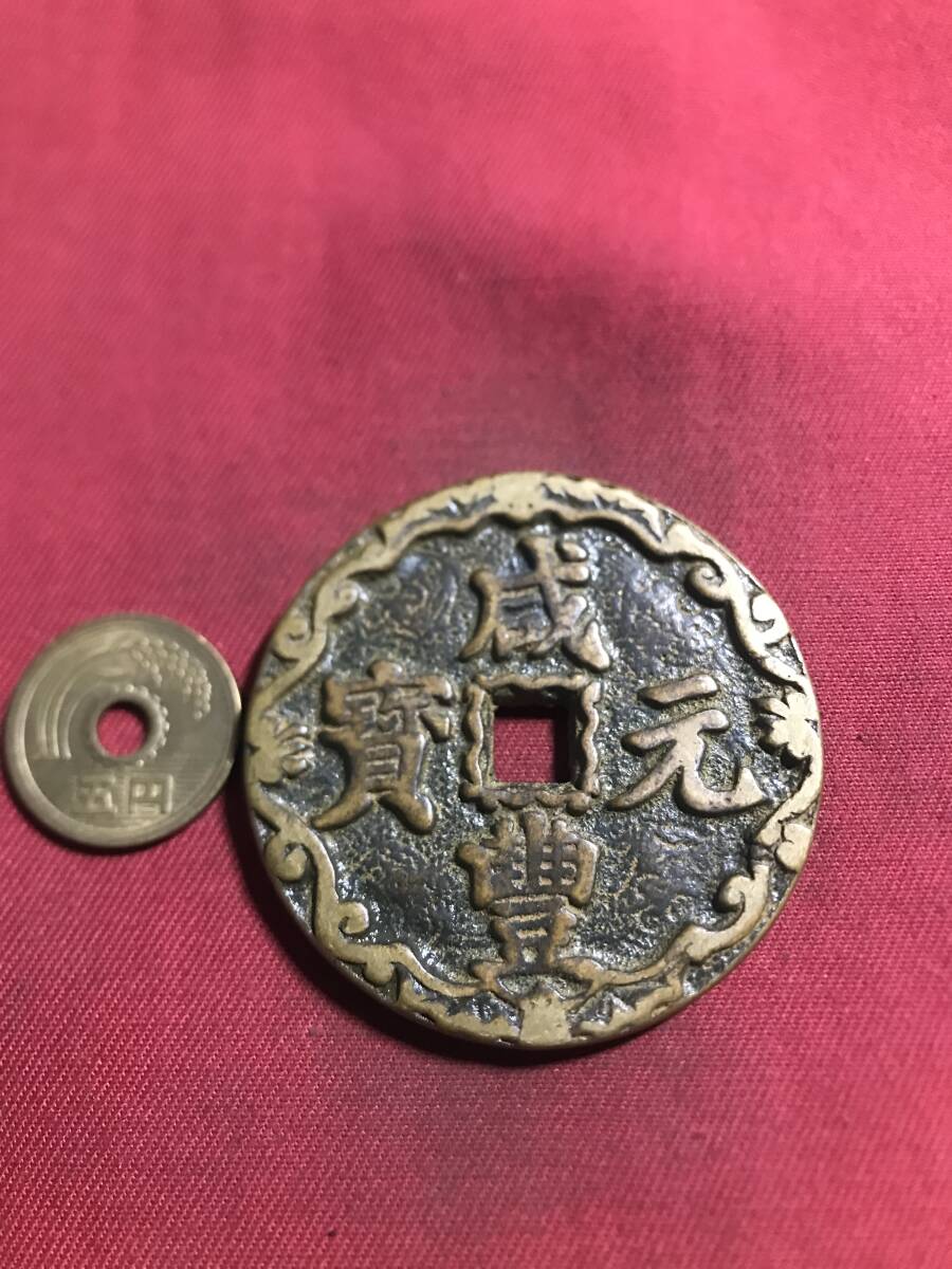 - 咸 豊 元 寶 背 当 百 と 記号 大きくて 周り模様もあり