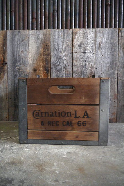 - ビンテージCarnationL.Aボトルケース [gobw-212]検アメリカusa/ボトル瓶ドリンクビンケース箱/運搬用/1966年8月ガーデニングキャンプ雑貨