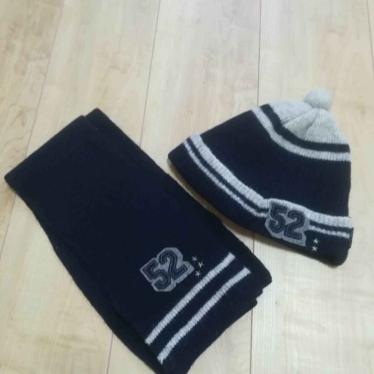 - コムサイズム 子供用 ニット帽マフラーセット 帽子52~54センチ 紺