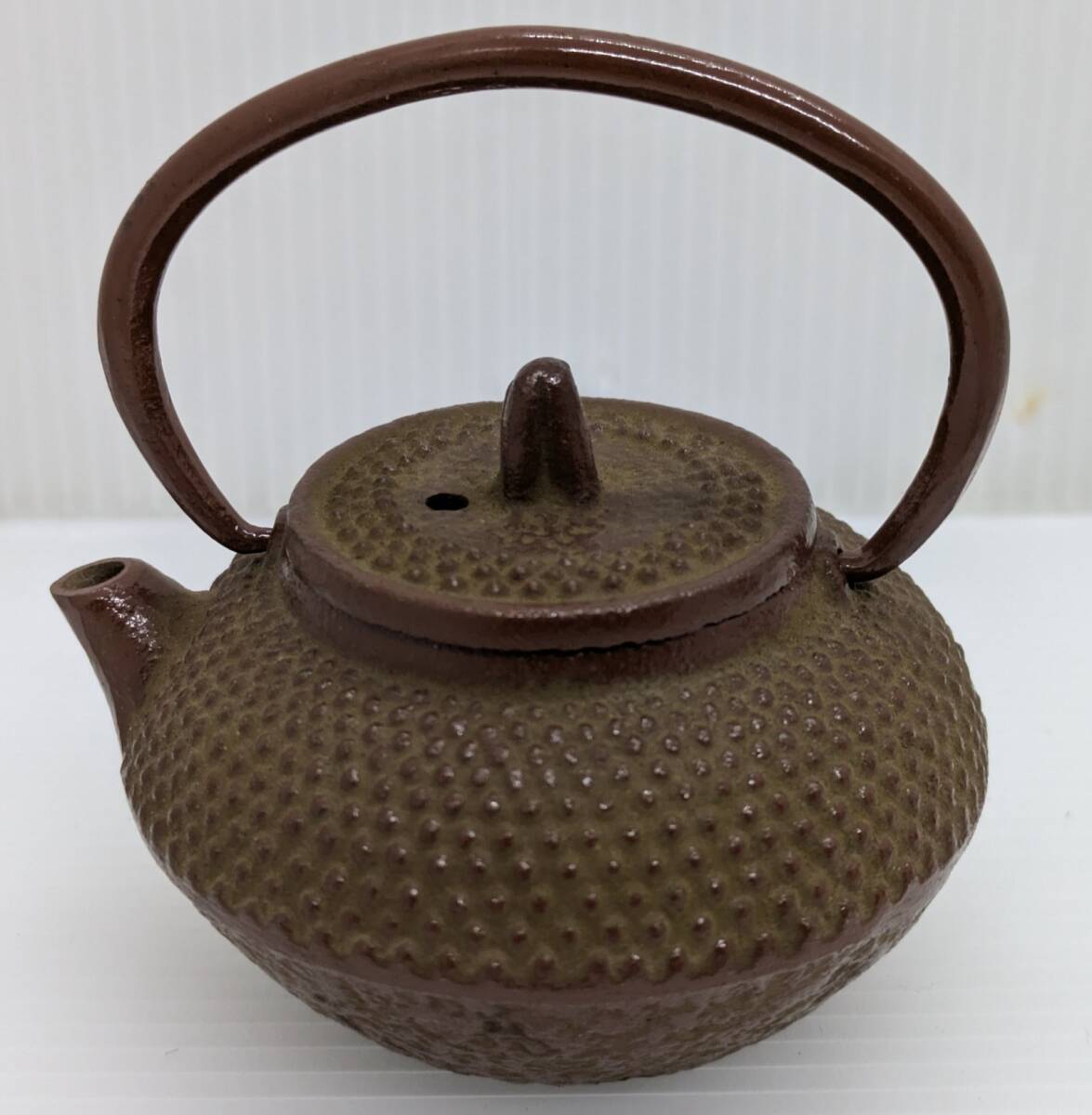 - No.281●ミニ鉄急須●未使用品に近い●伝統工芸●橙色●レトロ●あられ●民芸品●ミニチュア●鉄器●ミニ鉄瓶
