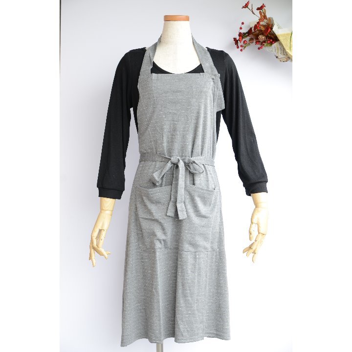 - 新品 男女兼用 エプロン ボーダー グレー 22BDR カフェ ロング丈 フリーサイズ おしゃれ ナチュラル カットソー ノーアイロン