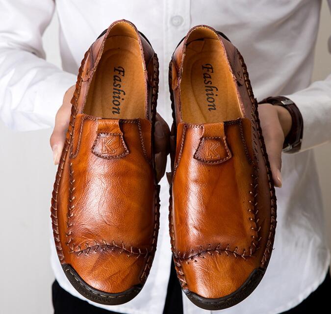 - 人気品メンズ ビジネスシューズ ドレスシューズ フォーマル レザーシューズ 革靴ローファースリッポン紳士靴 大きいサイズ ブラウン 27.5cm