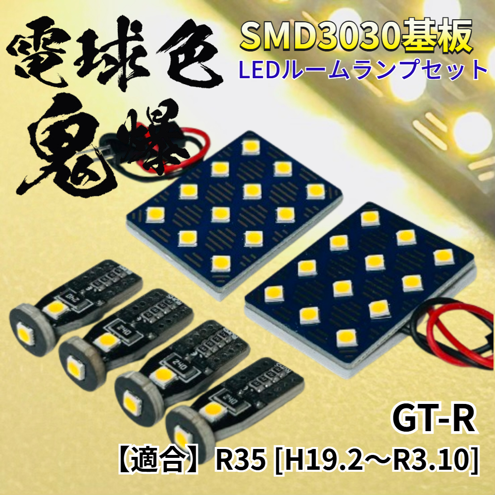 > 【電球色】GT-R R35 [H19.2~R3.10] 暖色 鬼爆基板 3030SMD LED ルームランプ セット 車内灯 室内灯 パーツ アクセサリ ニッサン