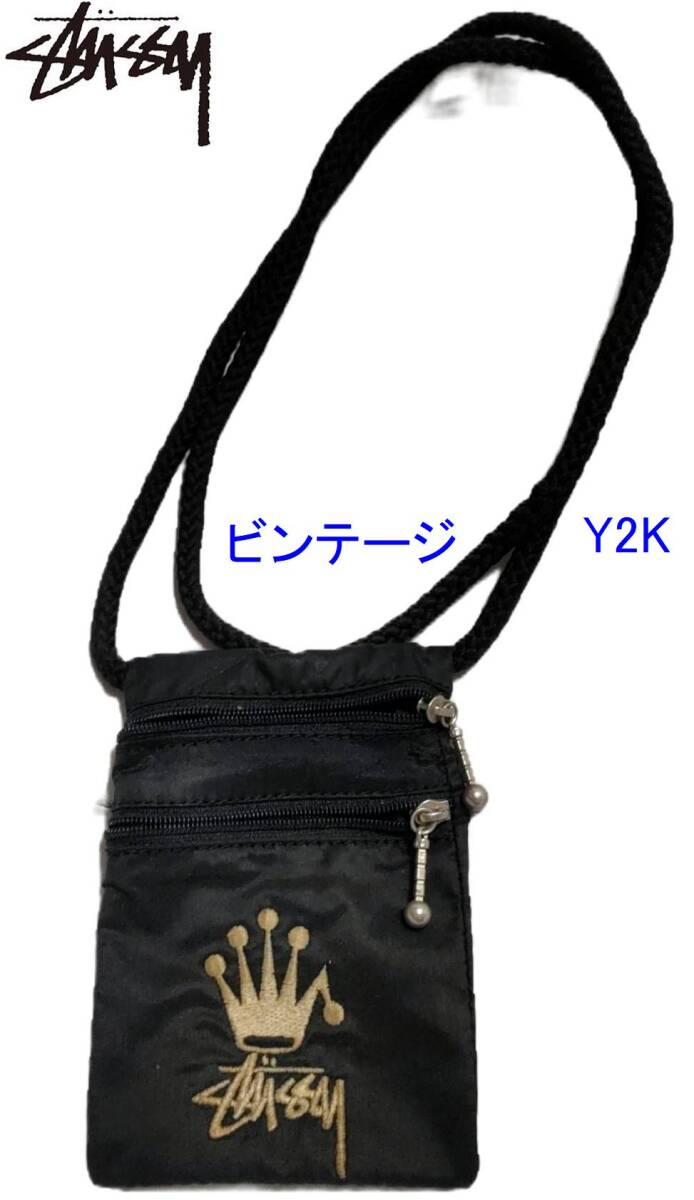 - ビンテージ old stussy クラウン刺繍ポーチ「小物入れ」