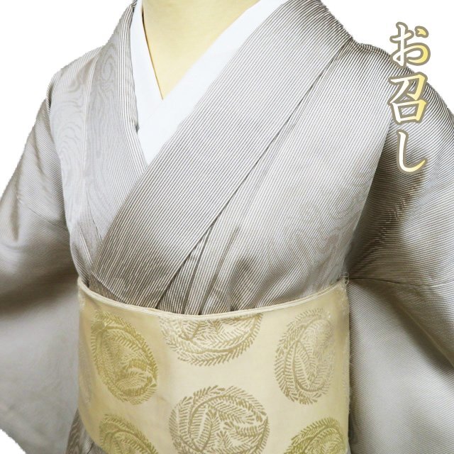 > お召し 御召 着物 中古 正絹 袷 カジュアル 縦縞模様 地模様 マーブル模様 灰白色 多色 身丈160cm 裄65.5cm M きもの北條 A1130-2