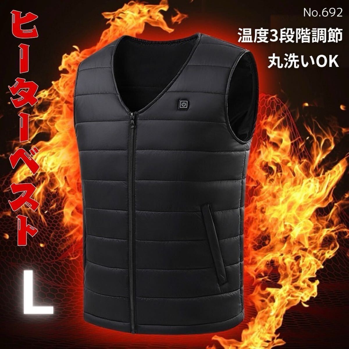 - ヒーターベスト ブラック L 電熱ベスト 加熱ベスト 防寒 冬 Vネック