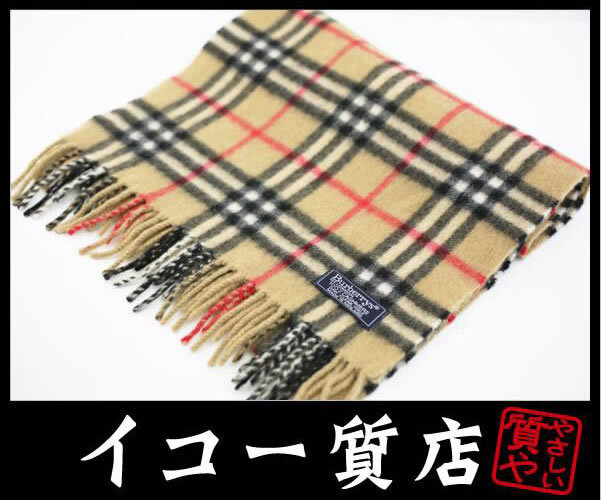- イコー質店 バーバリー ★未使用・展示品 人気カラー カシミア100% マフラー ベージュ系ノバチェック RY7293