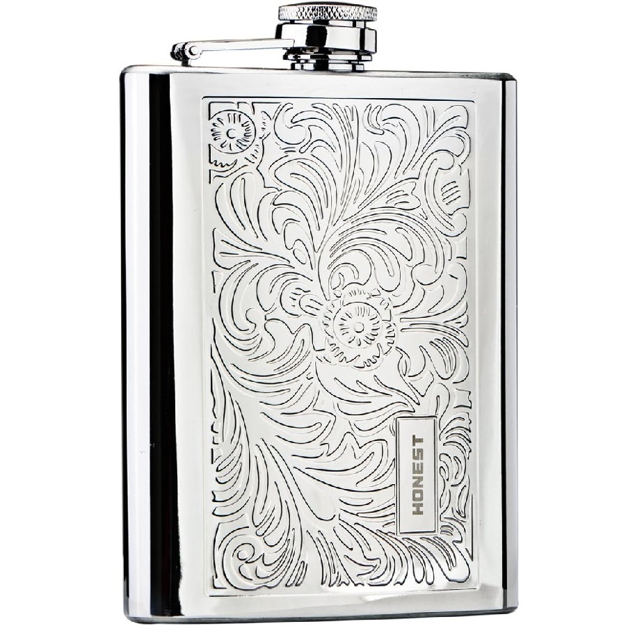 - スキットルボトル 8oz ウイスキー携帯ボトル ヒップフラスコ 唐草模 ショット×2 ファンネル×1付 ギフトボックス