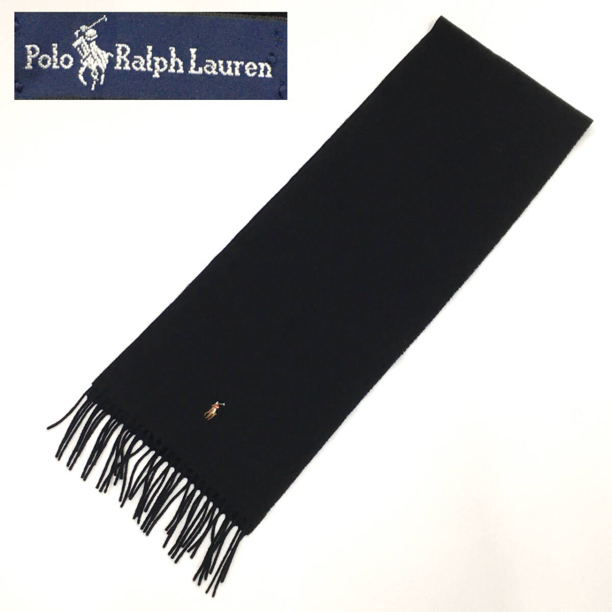 - POLO RALPE LAUREN ポロ ラルフローレン ラムウールマフラー ストール イタリア製生地 ポニー刺繍 黒