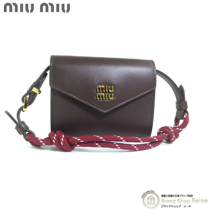 - ミュウミュウ (MIUMIU) レザー 二つ折り ショルダー財布 5MT024 ブラウン×ワインレッド(新品)