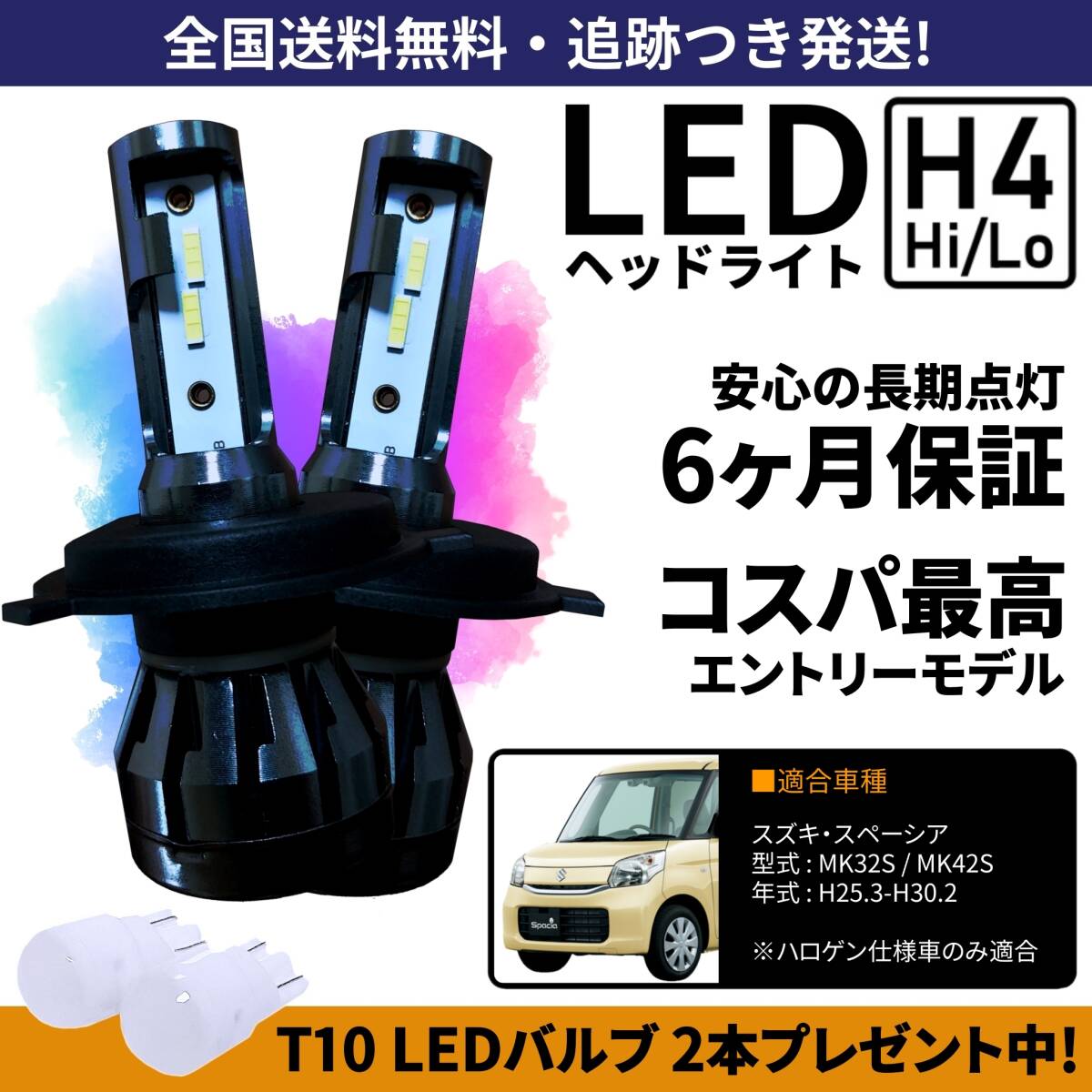 - 【送料無料】スズキ スペーシア MK32S MK42S LEDヘッドライト H4 Hi/Lo ホワイト 6000K 車検対応 保証付き