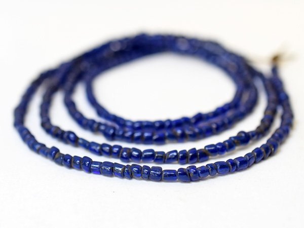 > ●わくわくとんぼ玉★得割! ANTIQUEナガ族半透明瑠璃色筒型小粒ビーズ一連A(Φ3.0mm) ガラスビーズ 蜻蛉玉 トンボ玉【C24009A】