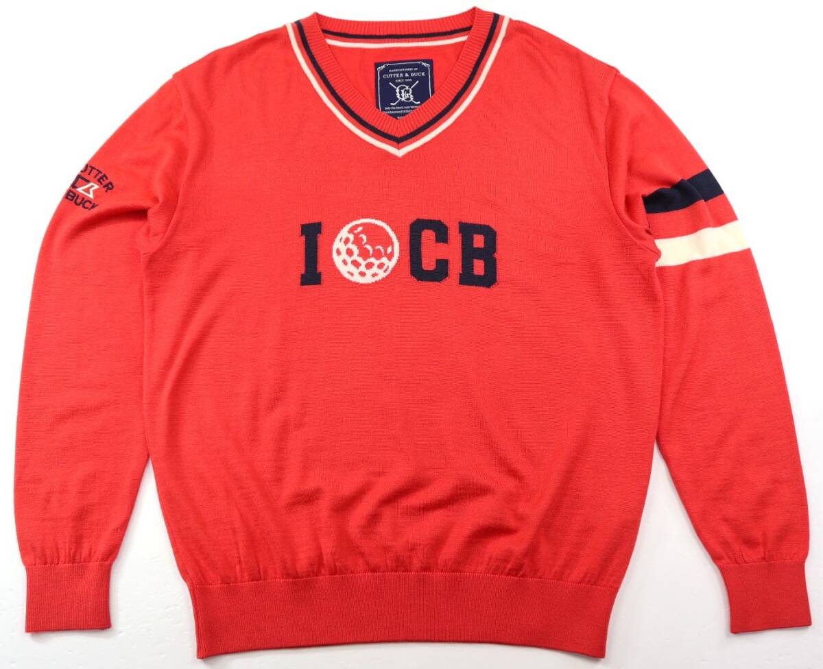 > 美品★CUTTER&BUCK カッター&バック ライン入り Vネックニットセーター/ゴルフ/日本製/デサント/LLサイズ