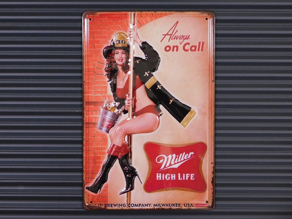 > ◆送料\185◆【Always on Call】※《エンボスメタルサイン / 300×200mm》 アメリカン雑貨 エンボス看板 ブリキ看板 セクシー美女
