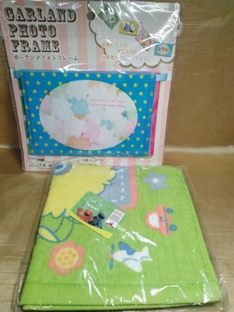 - セサミストリートのハンドタオル と ガーランドフォトフレーム 4枚つなぎ
