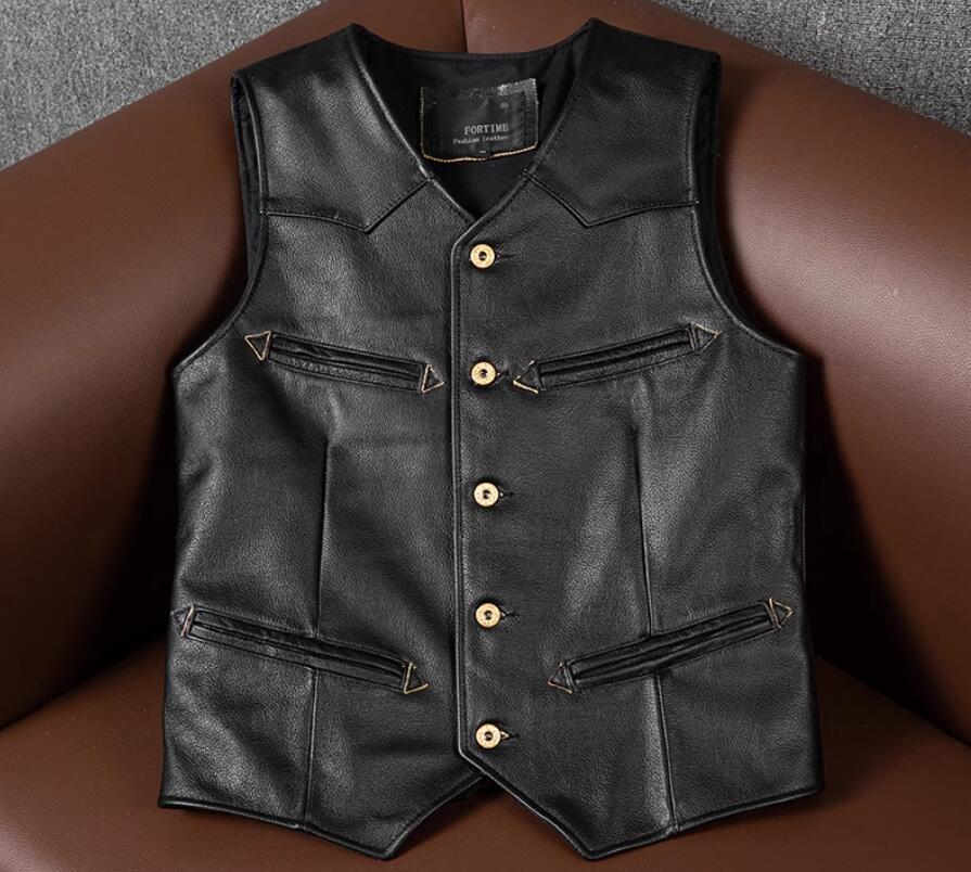 - 新品未使用野牛革ハイソンハイドレザーベストバイクベストカウハイド牛革機関車メンズファッション革ジャン本革 2種 シングルベスト S~4XL