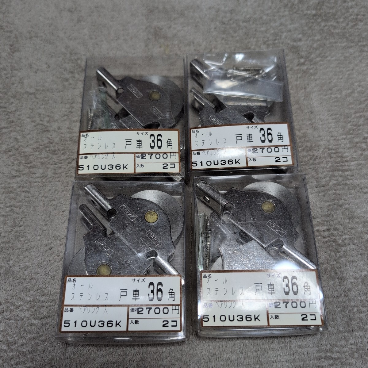 - ジャンク品/長期保管品/丸木金属/MARIC MK/ステンレス/戸車/36角/袖/ベアリング、ビス付き/1P2個入り×4Pセット