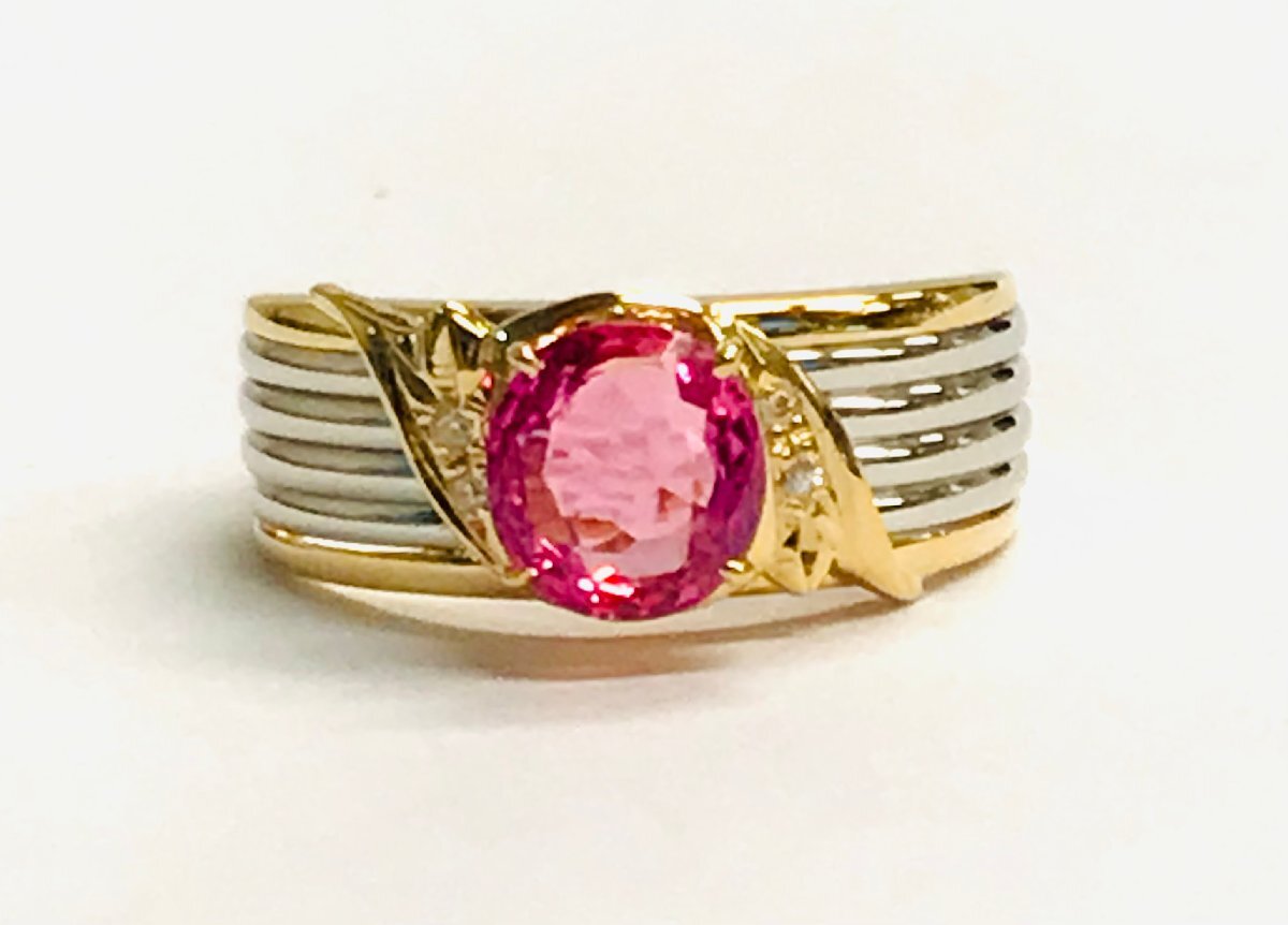 - qoj.Z4806 K18/PT900 コンビ 天然ピンクサファイヤ メレダイヤリング 中石1.24ct/枠石0.02ct 12号 ソーティング付き
