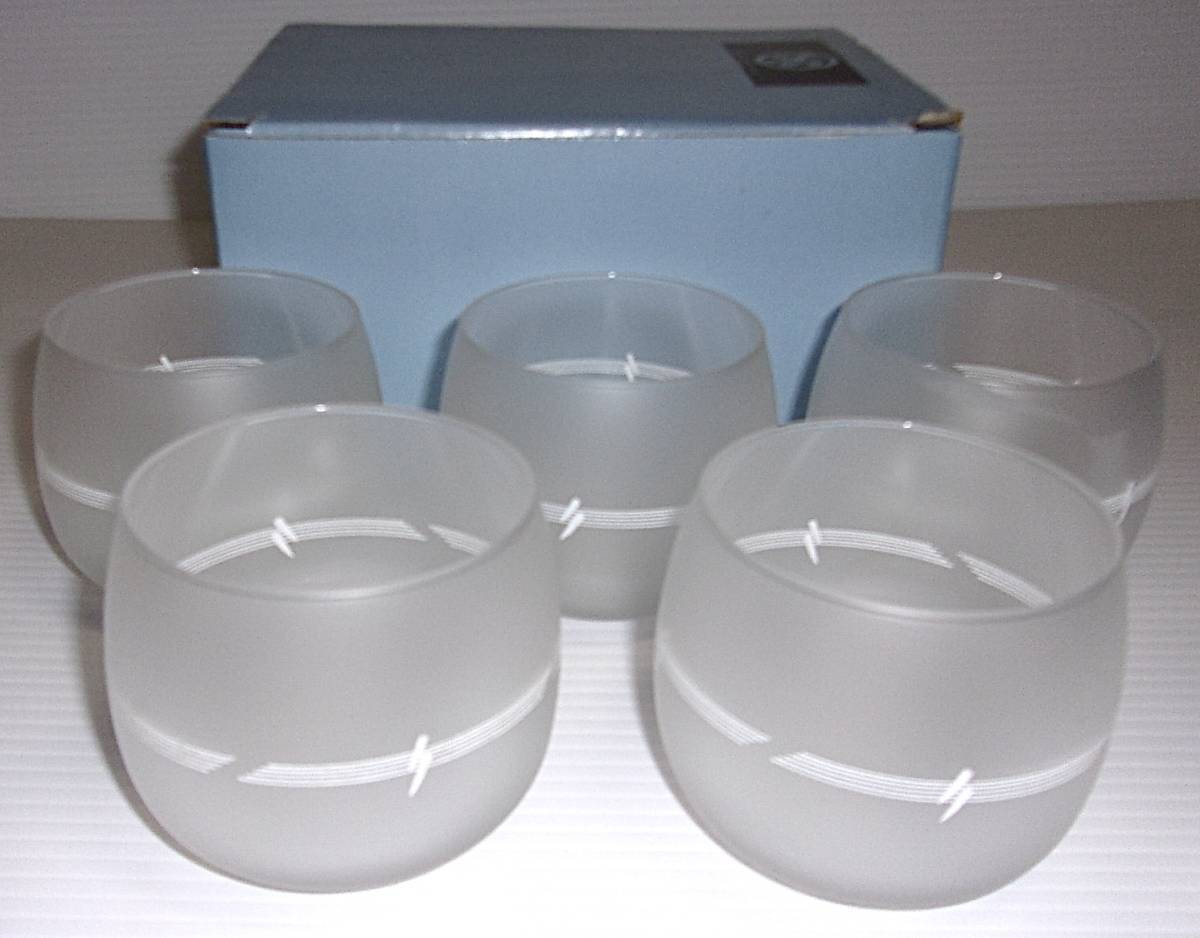 > たち吉 流水 冷茶碗 すりガラスカップ x 5個 品番:AZ-218 (未使用ですが、保管中のスレ傷 底面薄茶汚れ) 擦りガラス
