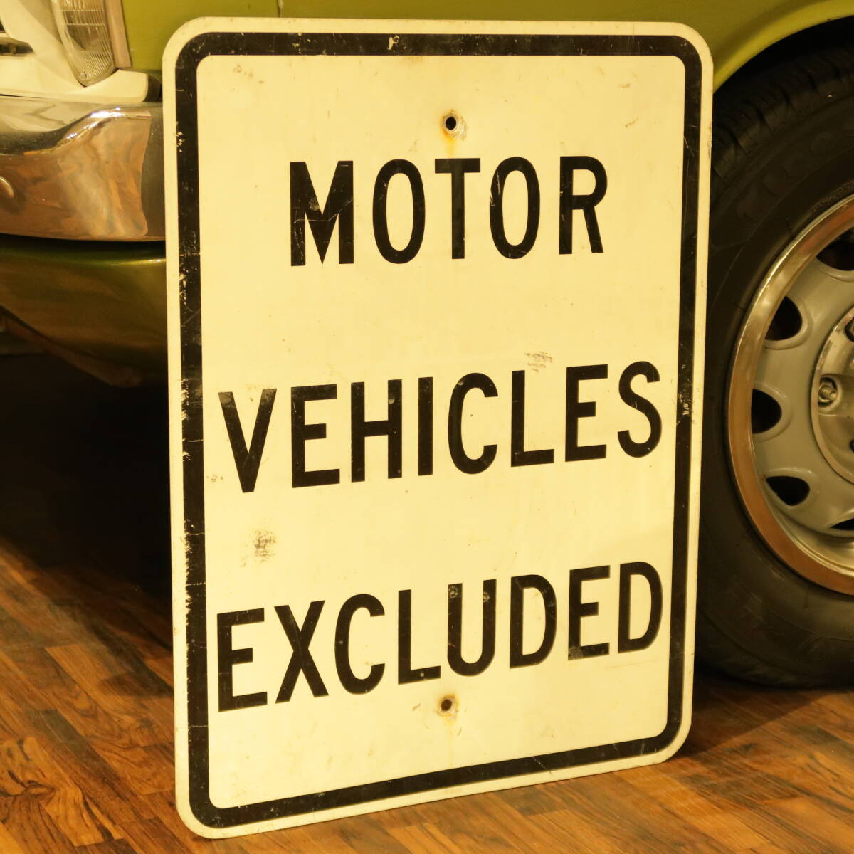 - MOTOR VEHICLES EXCLUDED ヴィンテージ ロードサイン USA 道路標識 ガレージ 店舗什器 当時物 雑貨 インテリア 世田谷